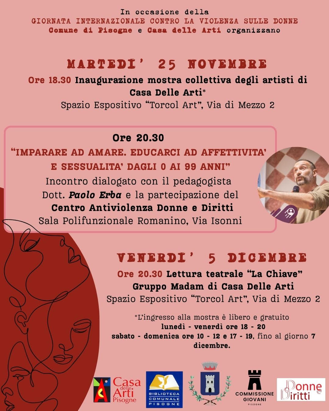 In occasione della giornata internazionale contro la violenza sulle donne il Comune di Pisogne e la Casa delle Arti organizzano degli incontri come da locandina allegata